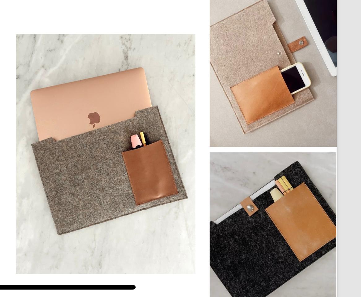 Sobre porta laptop, documentos personalizado. Realizado en fieltro y cuero.